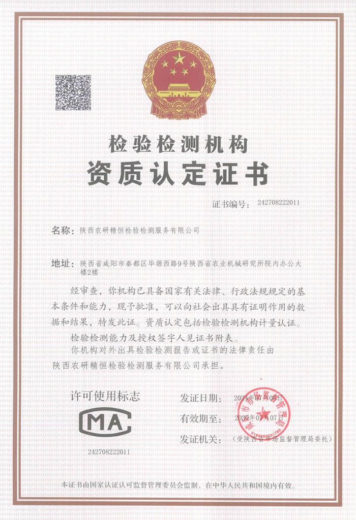陜西農(nóng)研精恒檢驗(yàn)檢測(cè)服務(wù)有限公司