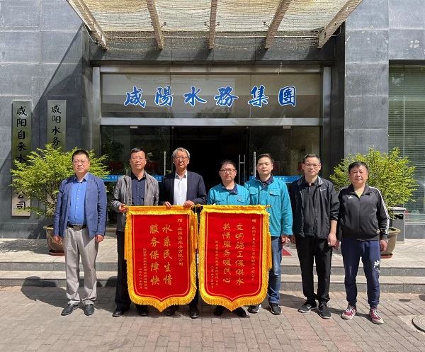 公司領導帶隊慰問咸陽市水務集團贈送錦旗