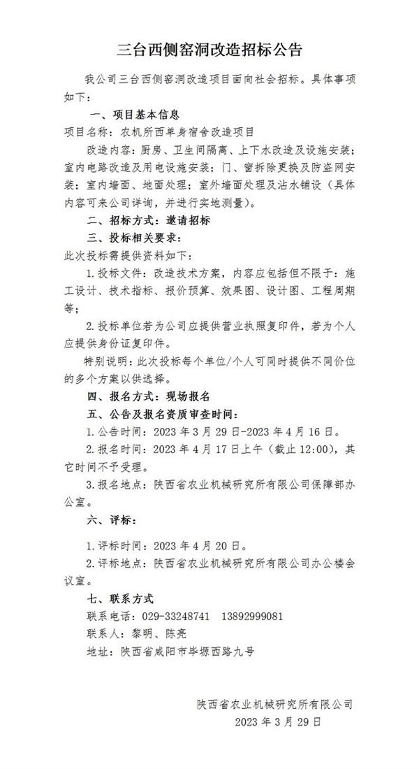 三臺西側窯洞改造招標公告