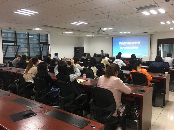 2017年9月26日上午,科研產業部參加了在陜西省科技資源統籌中心舉辦的專門為接券機構組織的培訓會。本次培訓會由創新券運營團隊項目負責人王濤主持,各科研院所、高校、企業接券工作相關人員共40余人參加了會議。創新券團隊對創新券工作的主要流程、下一步安排,進行了說明,并現場為大家答疑。