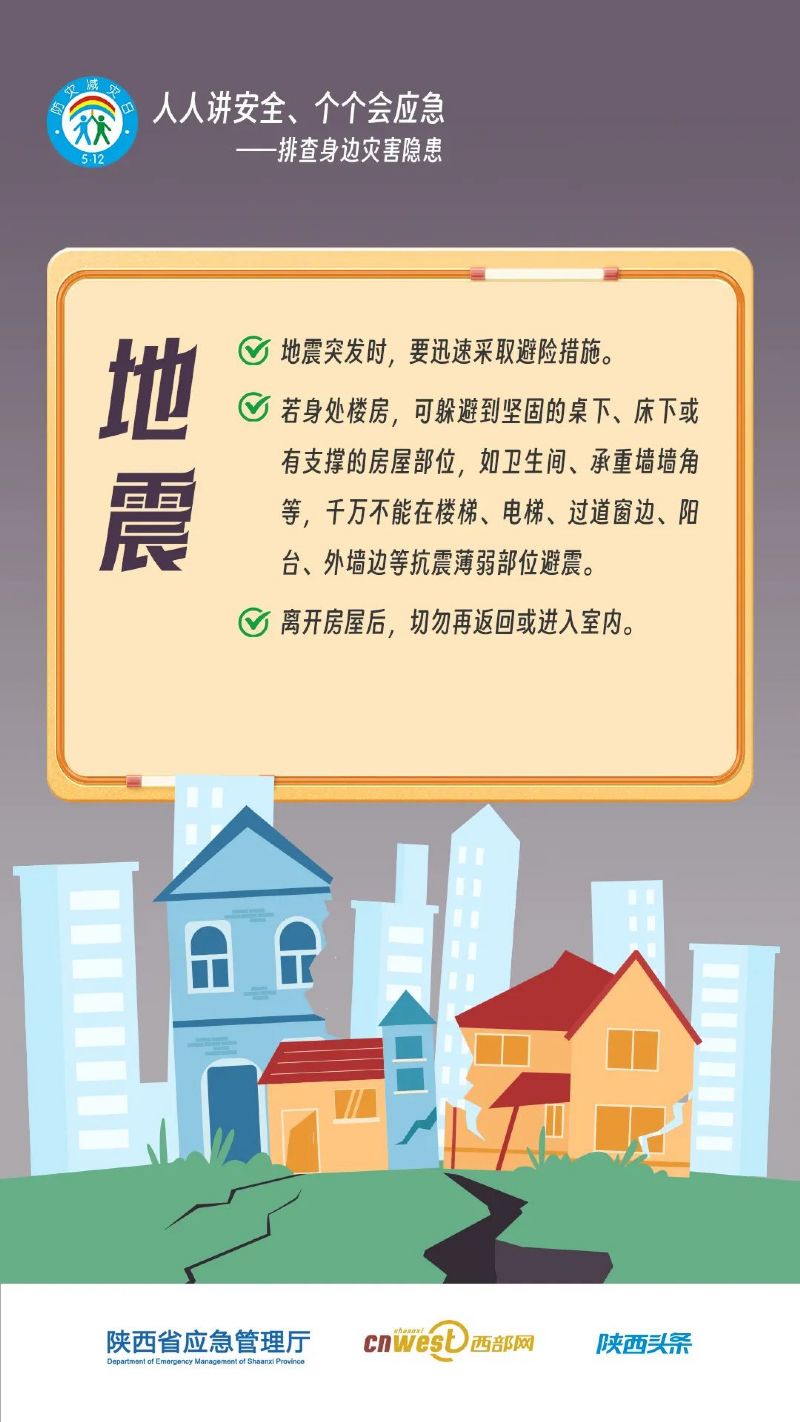 今年全國防災減災日主題為“人人講安全、個個會應急——排查身邊災害隱患”